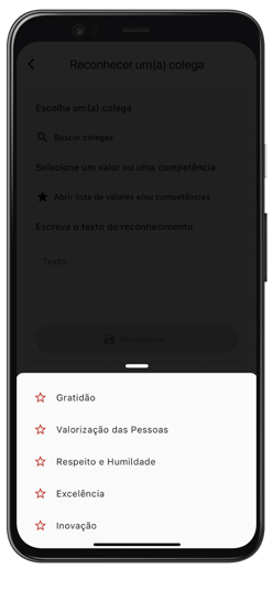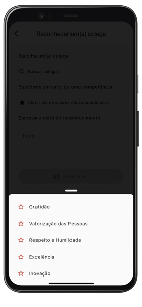 Plataforma fácil de usar, que facilita a dinâmica dos reconhecimentos entre os colegas de trabalho